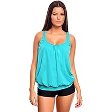 Einfarbig Badeanzug Push Up Top Strand Tankini Bikini Oberteil + Hose. Mixkini-Serie gleich mehrere Styles für extra viel Abwechslung am Strand! Oder kreieren Sie Ihren Look mit einem Tankini-Oberteil und einer frechen Bikini-Hose.